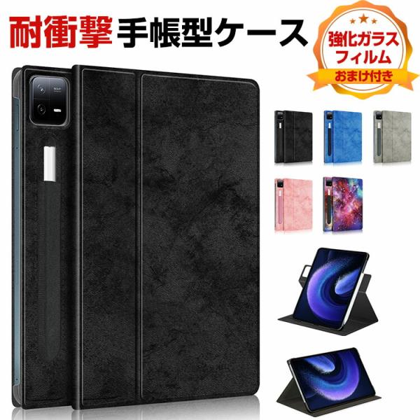 - シャオミ 小米 パッド 6 プロ Xiaomi Pad 6 / Pad 6 Pro 2023モデル 11型(インチ) ケース カバー 耐衝撃 落下防止 おしゃれ CASE 持ちやすい 軽量薄型 汚れ防止 Pencil収納機能 手帳型 360度回転 スタンド機能 PUレザー 手帳型カバー 強化ガラス付き