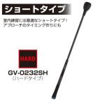 - ショート(ハードタイプ)・ブラック 全長:650mm GV0232 SH・・Style:ショート(ハードタイプ)・藤田寛之プロおすすめ!・気兼ねなく室内で練習ができるショートタイプ・しなり戻りを感じてヘッドスピードアップ!・ゴルフシャフト本来のしなりのイメージを体感してクラブと身体の使い方をマスターできるスイング練習器具・全長650mm、本体重量:ハード約300g 原産国:日本、材質/ヘッド:シリコーン、シャフト:PUR、グリップ:ラバー説明 ゴルフスイングに求められる体の動きの基本を体得できるスイング練習用具です。 気兼ねなく室内で練習ができるショートタイプ! 適度なヘッドの重さと巻きつくようなシャフトのしなりを感じながら繰り返し素振りを行うことで 遠心力だけに頼らない安定したスイングプレーンをマスターすることが可能です。 また、音を聞きながら素振りを行うことで 一人でも正しいスイングが出来ているか確認でき インパクトのタイミングやスイングのリズムを確立させるトレーニングができます。 余計な力みのない素直なスイングを身につけたい方におすすめです。 【ソフトタイプ】 使用方法:ゆっくりと大きく体に巻きつけるように振る 効果1:腕と身体が同調したスイングが身につく=ボディーターンが身につく 効果2:スイングの再現性が高まり、ショットの方向性が安定 【ハードタイプ】 使用方法:ボディーターンを利用して素早く振る 効果1:しなり戻りでヘッドが手を追い越すポイントがわかる 効果2:ヘッドスピードが向上&インパクトタイミングの体得=飛距離が伸びる