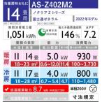 富士通 ルームエアコン 14畳用 冷暖房 単相200V ノクリア Zシリーズ プラズマ空清 無線LANアダプター内蔵 室内電源タイプ ホワイト AS-Z402M2-W (FUJITSU)