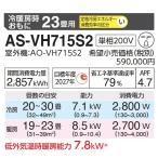 【2025年モデル】富士通ゼネラル AS-VH715S2(W) ルームエアコンノクリア VHシリーズ 耐塩害仕様 ホワイト おもに23畳用 単相200V ○[G]