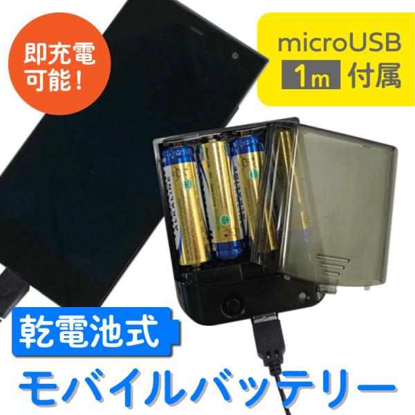 乾電池式モバイルバッテリー 単3電池4本付属 microUSB 1mケーブル 防災 送料無料 ecc962179 ブラック ホワイト ピンク ゆうパケット 簡易包装 アウトレット
