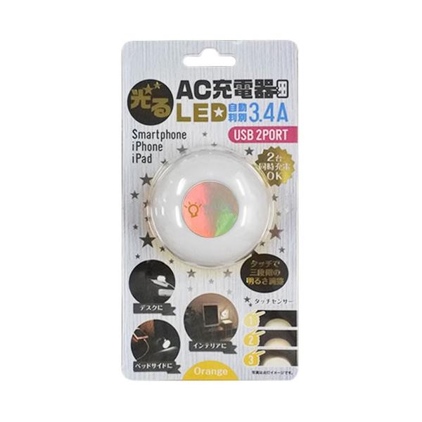 - オズマ ACU2-L34ADOR iPhone/スマートフォン用AC-USB充電器自動判別タイプ3.4A LEDオレンジランプ付 500