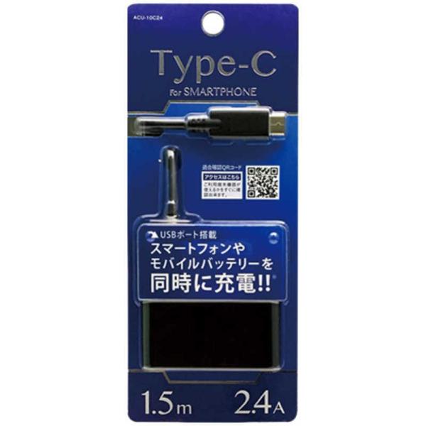 オズマ Type-C USB給電 ケーブル一体型AC充電器+USBポート 2.4A (1.5m 1ポート・ブラック) ACUV-10C24K [1.5m]