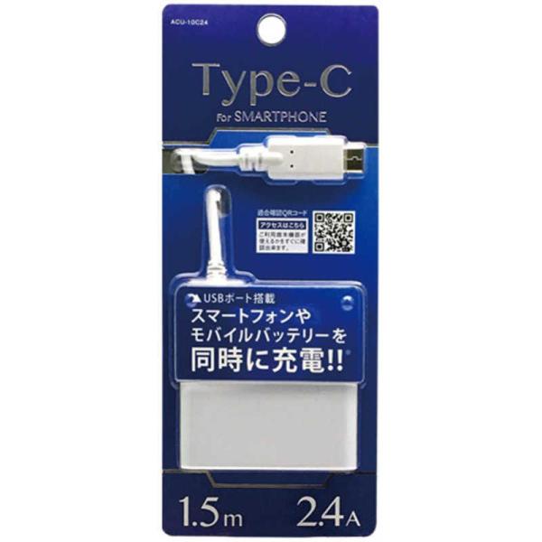 オズマ Type-C USB給電 ケーブル一体型AC充電器+USBポート 2.4A (1.5m 1ポート・ホワイト) ACUV-10C24W [1.5m]