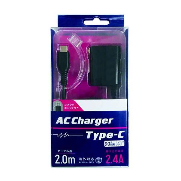 スマートフォン スマホ AC充電器 2.4A出力 Type-C 2m 200cm コネクタキャップ付 ブラック オズマ ACM-CC24MK