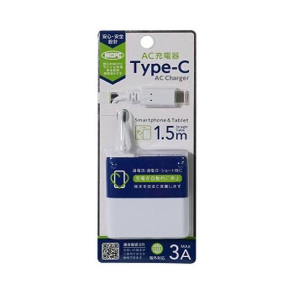 MCPC認証 スマートフォン スマホ AC充電器 3A 1.5m 150cm ホワイト オズマ AC-C30MPW