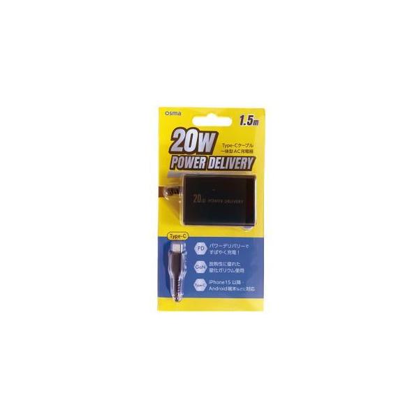 オズマ OSMA AC-C20PGBK 20WPD AC充電器 Type-C一体型 窒化ガリウム採用 ブラック