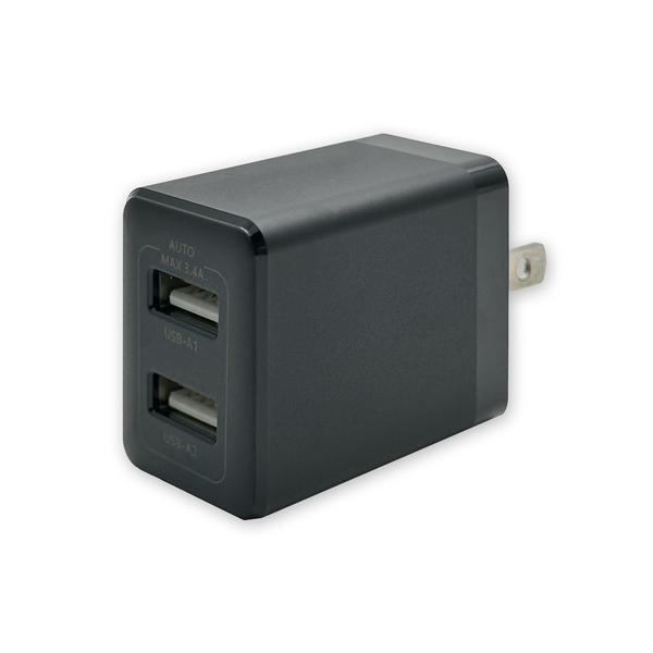 - OSMA ACU2-234ADK 3.4A AC充電器 2ポート 自動判別機能搭載 ブラック 500