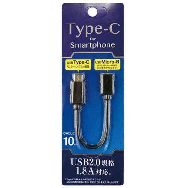 オズマ 0.1m メス USB microB→USB-C オス 2.0変換アダプタ 充電・転送 ブラック ADC-SP10K