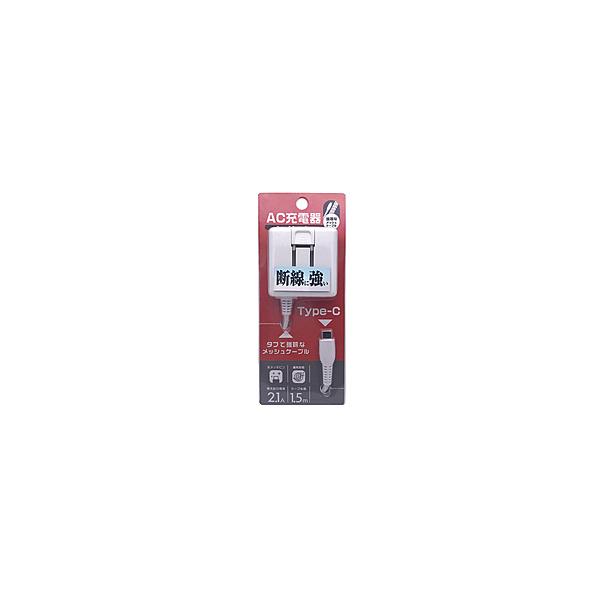 - Type-Cコネクタ対応のAC充電器です。断線に強いメッシュケーブルを採用。