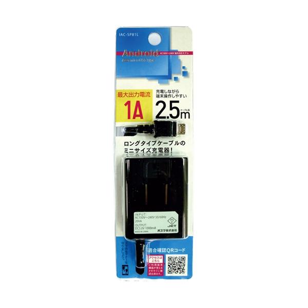 - ●1AのコンパクトなAC充電器です。●安心の6ヶ月メーカー保証つき。●コンセントは180度回転する収納プラグを採用。折りたたむことができます。●コンパクトで場所をとらないミニサイズの充電器!●ケーブル長はロングタイプの約2.5mです。●100V〜240V対応で、国内でも海外でもご使用になれます。※海外でお使いの場合、地域によってコンセントの形状が異なる場合があります。その場合はコンセントアダプタを別途お買い求めください。