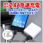 - 〔タブレット/スマートフォン対応[USB microB/USB給電]:充電器(AC)+USBポート〕最大出力2.4Aでスマートフォンへの急速充電が可能なAC充電器。■ USBポート付だから2台の端末機器を同時に充電することが可能です。■ 2台のスマホに同時充電ができて、最大出力2.4Aだからスマホやタブレットにも充電できます。■ ケーブル長は1.8mロングタイプ。※ 端末機器によっては2台同時充電ができない場合がございます。※ 2台同時充電には、別途専用ケーブルが必要です。本体サイズ(幅×高さ×奥行)mm約W56×H57×D20mm(AC部分)本体重量90g接続端子microUSBケーブル長約1.8m(コネクタ除く)形状スタンダードポート数1ポート定格出力電力12.48W定格出力電圧5.2V定格出力電流2.4A仕様1【対応機種】【USB microB搭載】タブレット/スマートフォン、【USB給電】※別途、USB充電ケーブルが必要です。 ※対応機種はメーカーホームページをご確認ください。仕様2【色・柄】ホワイト〔タブレット/スマートフォン対応[USB microB/USB給電]:充電器(AC)+USBポート〕 最大出力2.4Aでスマートフォンへの急速充電が可能なAC充電器。