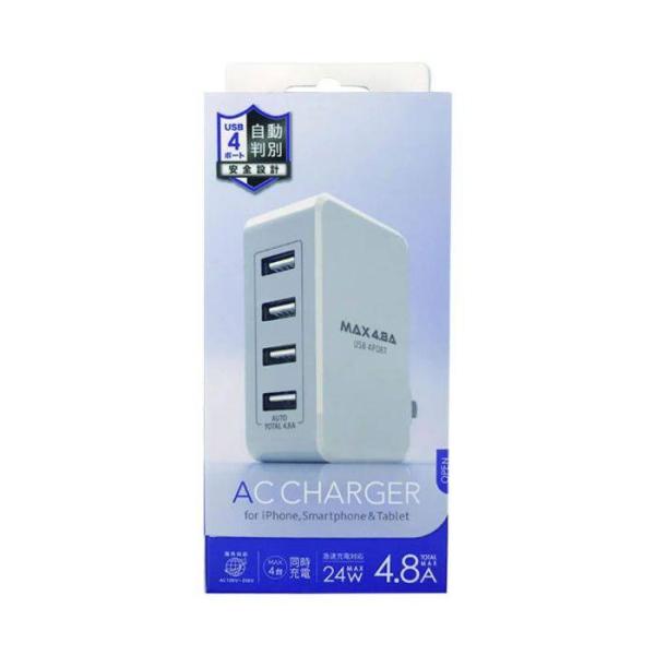 iPhone スマートフォン スマホ AC-USB 充電器 自動判別タイプ 4ポート 4.8A ホワイト オズマ IH-ACU448ADW