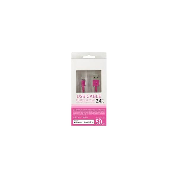 オズマ iPad/iPhone/iPod対応 Lightning ⇔ USB-A スリムタイプケーブル 充電・転送 (0.5m・ピンク) MFi認証 UDM-SL050P 【864】 [振込不可]