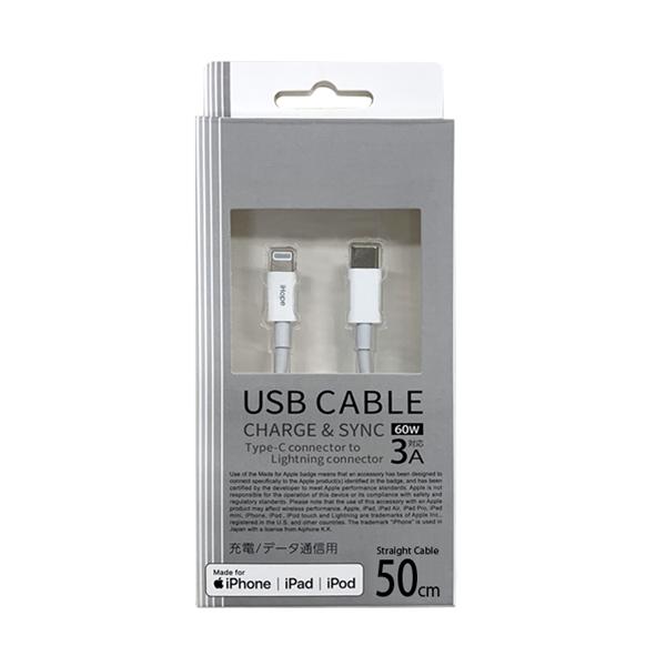 - Type-C搭載の充電器またはパソコンからLightningポートを搭載したApple社製の端末に充電が出来ます。MacシリーズからiPhone/iPad/iPodへの充電・同期をする事が出来ます。※Type-C搭載のiPadには非対応です。Power Deliveryに対応したType-Cポート付きのパソコン・充電器の場合に急速充電が可能です。(DC20V/3A 60WまでのUSB PDに対応)Appleの正規ライセンス「Made for iPhone/iPad/iPod」を取得した安心して使用できる製品です。ケーブル長約50cm(コネクタを除く)重量約13g主な対応機種Lightningコネクタを搭載したiPhone/iPad/iPod充電規格USB Power Delivery対応仕様1MFI認証仕様2PowerDelivery対応【MFI認証】PowerDelivery対応のType-C to Lightning通信・充電USBケーブルです。