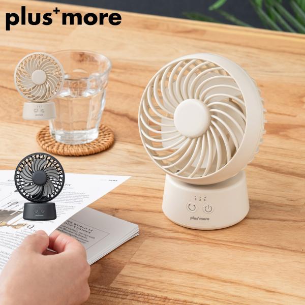 plusmore プラスモア 扇風機 首振り 卓上 風量3段階 デスク 熱中症対策 小型 コンパクト ラウンドミニデスクファン 首振り機能付 PBAF005-DG