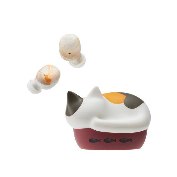 - [ラディウス 猫のかたちの完全ワイヤレスイヤフォン NEKO true wireless earphones ミケ HP-C28BTM [HPC28BTM]] の商品説明●小さく丸くなって眠る猫をモチーフにした完全ワイヤレスイヤホン。●ランダム成形されたマーブル模様による、世界に一つだけのイヤホン。●ミステリアスなクロ(別売)、お茶目なミックス(別売)、気品溢れるシロ(別売)に加え、新たに元気いっぱいのチャトラ(別売)、クールなハチワレ(別売)、マイペースなミケが仲間入り。●「HP-C28BT」は製品の売り上げから、1台あたり20円を保護猫活動団体へ寄付します。●音声アナウンスは猫の声。●充電ケースのバッテリー残量は「おさかなLED」で確認することができます。●再生時間は最大17.5時間。IPX4の防滴性能。●VGP2024夏/特別賞企画賞/部門賞受賞。[ラディウス 猫のかたちの完全ワイヤレスイヤフォン NEKO true wireless earphones ミケ HP-C28BTM [HPC28BTM]]のスペック●通信方式:Bluetooth標準規格 Ver5.3●出力:Bluetooth標準規格 Power Class 2●最大通信距離:見通し距離 約10m●対応Bluetoothプロファイル:A2DP, AVRCP, HFP, HSP●コンテンツ保護方式:SCMS-T●対応Bluetoothコーデック:AAC, SBC●連続再生時間:約3.5時間(実測値)、充電ケース使用時/約17.5時間(実測値)※ご使用時の電波状況や音量によっては再生時間が短くなる場合があります。●ドライバー型式:ダイナミック型●質量:イヤホン/約3g×2、充電ケース/約30g●付属品:イヤーピース(S、M、L)、充電ケーブル(USB-C to USB-A)、取扱説明書(保証書)○初期不良のみ返品可