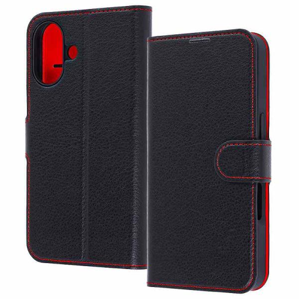 iPhone 17 / 手帳型レザーケース シンプル マグネット / ブラック/レッド