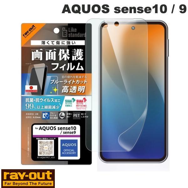 Ray Out レイアウト AQUOS sense10 / 9 PETフィルム ブルーライトカット 光沢 衝撃吸収 抗菌・抗ウイルス 平面保護 指紋防止 RT-AQM7F/DM ネコポス可