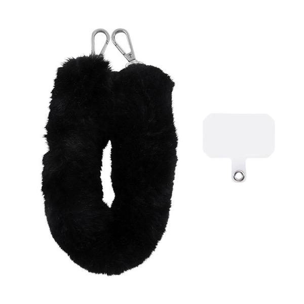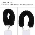 もこもこ ファー ハンド ストラップ スマホ ブラック 黒 エコファー 全機種対応 ホルダー iPhone Android アイフォン アイホン