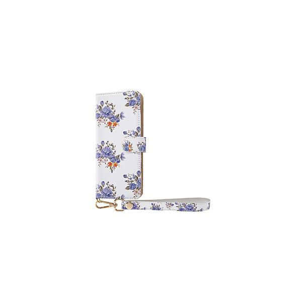 レイアウト あんしんスマホ KY-51B 手帳 ハンドストラップ ルーペ付 花柄 ブルー RT-AKYB51ALC/FA