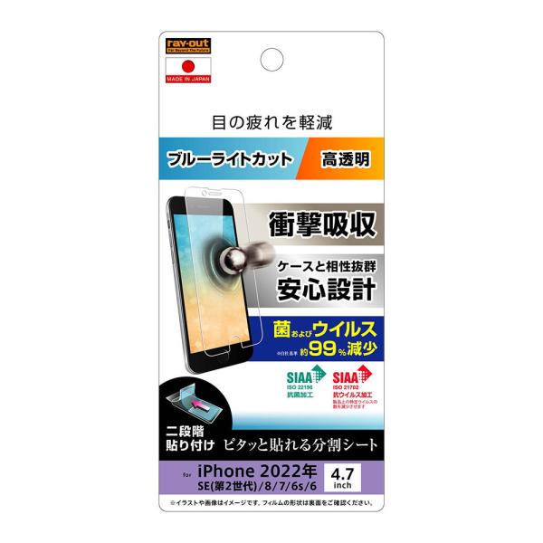 レイアウト iPhone SE(第3世代/ 第2世代)/ 8/ 7/ 6s/ 6用 液晶保護フィルム 平面保護 ブルーライトカット 光沢 抗菌 RT-P35F/ DM 返品種別A
