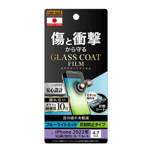 レイアウト iPhone SE 第3世代/第2世代/8/7専用 フィルム 10H ガラスコート 衝撃吸収 BLカット 反射防止 RTP35FTW12