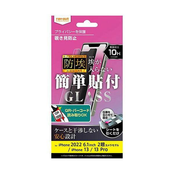 レイ・アウト iPhone 14 / 13 / 13 Pro ガラス 防埃 10H 180° 覗き見防止(RT-P36F/BSPG)