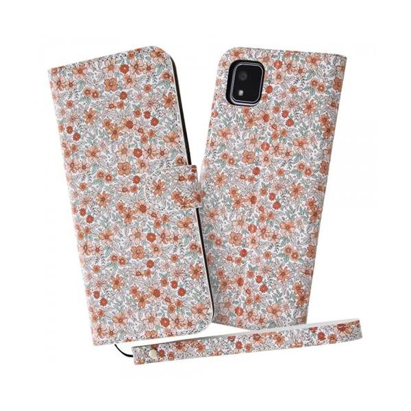 ray-out(レイ・アウト) RT-KS3ALC3/FO 花柄/オレンジ かんたんスマホ3 耐衝撃 手帳型レザーケース 花柄 ストラップ付