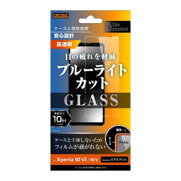 - レイ・アウト Xperia 10 VI / Xperia 10 V Like STD ガラスフィルム 10H BLC 光沢 RT-RXP10M6F/SMG 500