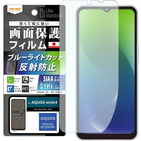 レイ・アウト AQUOS wish4 Like STDフィルム 衝撃吸収 BLC 反射防止 抗菌・抗VS RT-AQL2F/DK