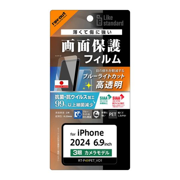 レイアウト iPhone 16 Pro Max用 Like standard 液晶保護PETフィルム 衝撃吸収 抗菌・抗ウイルス 平面保護 RT-P49F/DM 返品種別A