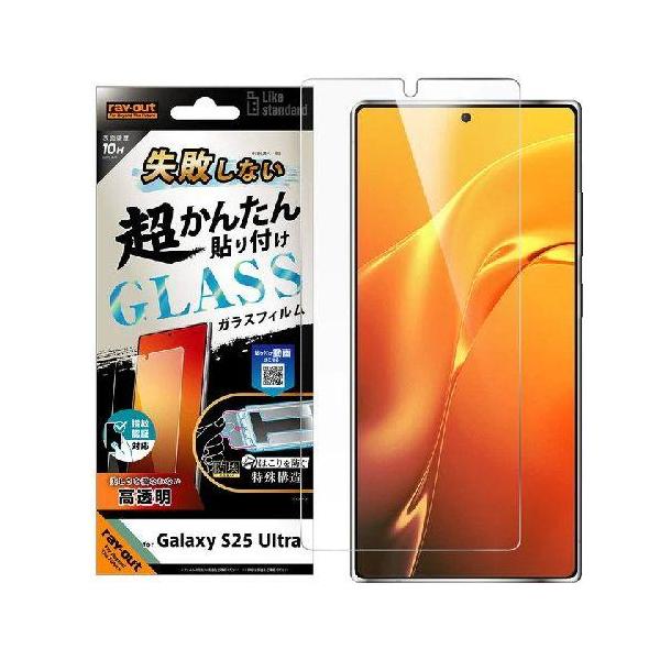 ray-out(レイ・アウト) Like standard 失敗しない 超かんたん貼り付け キット付き ガラスフィルム 10H 光沢 指紋認証対応 Galaxy S25 Ultra