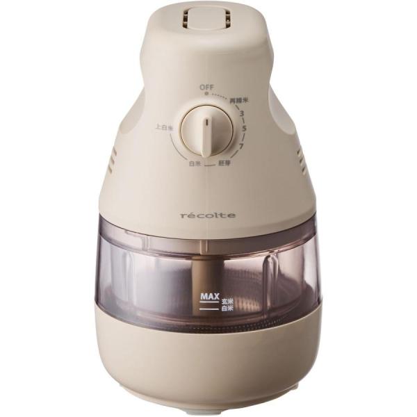 - recolte Compact Rice Polisherレコルト コンパクト精米機 分づき米や古米もおいしく 手軽に使える自動精米機 『 recolte コンパクト精米機 』はシンプルでキッチンに置きやすい2合タイプの家庭用精米機。玄米の栄養素を残した3分づき米に胚芽米、上白米まで、ダイヤルひとつでお好みの精米度に調節。古米の再精米にも対応します。お米の割れや欠けが起こりにくいかくはん式で、負荷を抑えて精米できる設計も◎。パーツが少なく、操作やお手入れも簡単。コンパクトで手軽に使え、自宅にいながらにして、いつでも精米したてのおいしいご飯が味わえる、便利なキッチン家電です。 スペック 品名 recolte Compact Rice Polisherレコルト コンパクト精米機 品番 / JAN クリームホワイト:RRP-1( W )/ 4582180208279 サイズ 約 幅 142mm×奥行き 147mm×高さ 233mm 重さ 約 1.3kg 素材 本体 / ぬか受けトレイ:ABS樹脂バスケット:トライタン、ステンレス羽根:ナイロン、ステンレス コードの長さ 約 1m 電源 AC100V 50/60Hz 消費電力 150W 最大精米量 玄米:約 330g白米:約 300g※それぞれ約 2合です。グラム数はお米の種類などにより多少前後します。 定格時間 15分 機能 ・2合タイプの家庭用精米機・7種類の精米モード白米:再精米玄米:3分づき、5分づき、7分づき、胚芽、白米、上白米・モーター保護装置:モーターに負荷がかかりすぎると一時停止 保証期間 メーカー保証1年 付属品 計量カップ、取扱説明書( 保証書含む ) お手入れ [ 水洗いできるもの ]羽根、バスケット、ぬか受けトレイ、計量カップ ・台所用中性洗剤を含ませたスポンジなどで洗ってよくすすぎ、乾いた布などで水気を取ってください。 ・食器洗浄乾燥機には対応していません。 ・金属たわし、ナイロンたわし、磨き粉、ベンジン、シンナー、漂白剤、アルコール、化学洗剤、酸性やアルカリ性の洗剤などは使用しないでください。 [ 水洗いできないもの ]本体 ・柔らかい布などに水を含ませ、かたく絞って汚れを拭き取り、乾いた布などで水気を取ってください。 ・汚れがひどい場合は、水で薄めた台所用中性洗剤を含ませた布で拭き取り、水気を取ってください。 備考 ・無洗米、籾米、濡れたお米や、お米以外のものには使用できません。 ・低温で保存していたお米は、常温に戻してから精米してください。 ・お米の産地、品種、水分量、保存状態、精米時期などによって、精米度や胚芽の残り具合が変わることがあります。 ・バスケットの中にお米を入れたままにしたり、ぬか受けトレイにぬかを入れたままにしないでください。 ・付属の計量カップはすり切りで玄米1合です。白米を計量する場合は、180mLの目盛りで使用してください。 ・バスケットのMAXラインは玄米、白米それぞれ約2合分となります。お米を入れる際はMAXラインを超えないようにしてください。 ご注意点 ※製品仕様やパッケージは改良のため予告なく変更される場合があります。 ※サイズや色味は個体により若干の差異が生じることがあります。 ※商品の色は、画面上の画像と実物とでは多少異なる場合があります。あらかじめご了承のうえ、お買い求めください。 ※交流100V以外では使用しないでください。 ※定格時間の15分を超えて使用しないでください。 ※空運転をしないでください。 ※不安定な場所、滑りやすい場所、水がかかりやすい場所、濡れている場所、熱に弱い敷物の上、壁や家具の近く、ストーブやガスコンロなど熱源や火気のそば、直射日光が当たる場所、高温多湿になる場所、小さなお子さまやペットが触れるところ、屋外では使用しないでください。 【精米したての美味しさをご家庭で】 玄米からお好みの白さへ、ダイヤルを回すだけで簡単精米。 recolte(レコルト)コンパクト精米機 RRP-1は、家庭用の小型精米機として、1〜2合の少量精米に最適。3分づき・5分づき・7分づき・胚芽米・白米・上白米まで選べる分づき精米対応で、栄養をしっかり残したお米が手軽に楽しめます。 備蓄米や古くなったお米も再精米すれば風味が復活。 古米の再生や健康志向の食生活にも最適です。 軽量でコンパクトなデザインは省スペースなキッチンにもぴったり。 自動・かくはん式精米機なので操作もシンプルで、お手入れも簡単。 新生活家電や結婚祝い・出産祝い・引っ越し祝いなど、おしゃれなプレゼントとしても喜ばれるアイテムです。 精米したてのお米本来の香りと味を、毎日の食卓にどうぞ。家電>キッチン家電>精米機2026年2月10日(火)更新 (集計日:2月9日) recolte レコルト コンパクト精米機 RRP-1 分づき米や古米もおいしく手軽に使える自動精米機 『 recolte コンパクト精米機 』はシンプルでキッチンに置きやすい2合タイプの家庭用精米機。玄米の栄養素を残した3分づき米に胚芽米、上白米まで、ダイヤルひとつでお好みの精米度に調節。古米の再精米にも対応します。お米の割れや欠けが起こりにくいかくはん式で、負荷を抑えて精米できる設計も◎。パーツが少なく、操作やお手入れも簡単。コンパクトで手