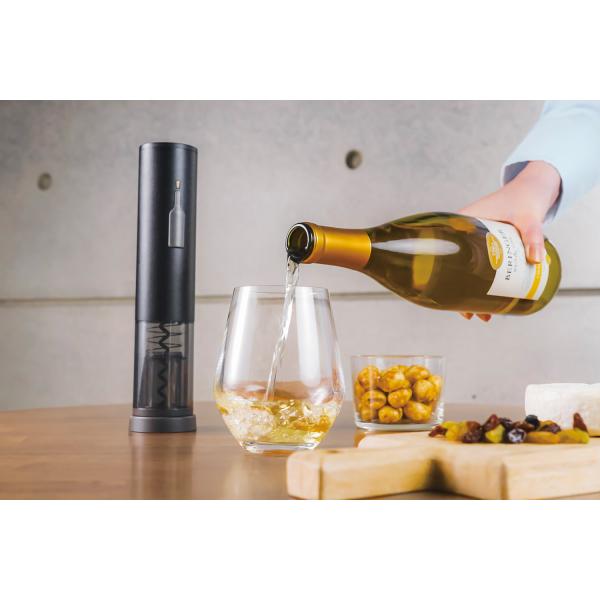 - 本商品は店頭と在庫を共用しておりますため、販売状況によってはご用意できない場合がございます。 あらかじめご了承のうえ、ご注文ください。 これ一本で、ワインボトルの開栓が簡単に! ボトルのシーリングをカットするためのホイルカッターが、スタンドとして本体下部に収納されています。スタンドも兼ねているため、紛失の心配がありません。本体下部がスモークグレーになっており、稼動時のスクリューとコルクの状態が見えるため、失敗知らずで安全に使用できます。 ワインボトル型のオシャレなボタンで、操作もしやすくデザイン性も。本体カラーはマットな質感のレッド・ナチュラルブラックの2色。ギフトにピッタリのパッケージで、別売りの同色ワインキーパーとのセット組にしてギフトにしていただくのもオススメです。 約10分の充電で1回使用可能。スイッチ上部(通電ランプ)にLEDが内蔵されており、電池残量が少なくなるとオレンジに点灯してお知らせします。 【本体サイズ・重量】 サイズ:約W 4.8×D 5.0×H 22.0 cm 重量:約343g