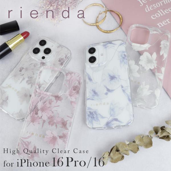 セール品 iPhone16 ケース クリア ブランド リエンダ rienda Dress Flower 花柄 クリア ケース iphone16 iphone16pro ケース スマホケース かわいい
