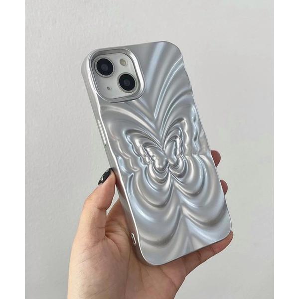 商品名:バタフライデザイン メタリックシルバー スマホケース 13 14 15