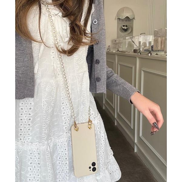 商品名:iphone14ケース iphone13ケース スマホショルダー ショルダースマホケース パール
