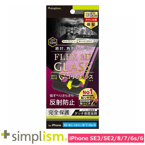 スマホフィルム フィルム iphoneSE3/SE2/8/7/6s/6 トリニティ Simplism iPhone SE(3/2)/8/7/6s/6F3Dゴリラガラス反防複合Fガラスブラック スマホ フィルム