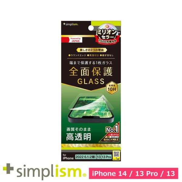 スマホフィルム フィルム iphone14/13Pro/13 トリニティ Simplism iPhone 14 / 13 / 13 Pro フルカバー 高透明 画面保護強化ガラス スマホ フィルム