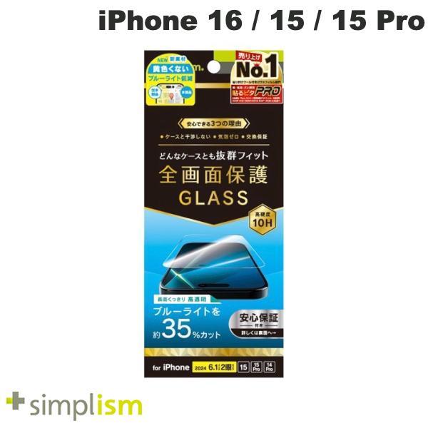 Simplism シンプリズム iPhone 16 / 15 / 15 Pro / 14 Pro ケースとの相性抜群 黄色くないブルーライト低減 画面保護強化ガラス 光沢 ネコポス送料無料