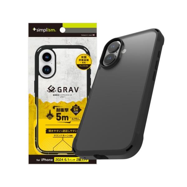 iPhone 16用 [GRAV UNLIMITED] 超衝撃吸収 ハイブリッドケース 5M ブラック Simplism(シンプリズム) トリニティ TR-IP24M2-GRU-CLBK
