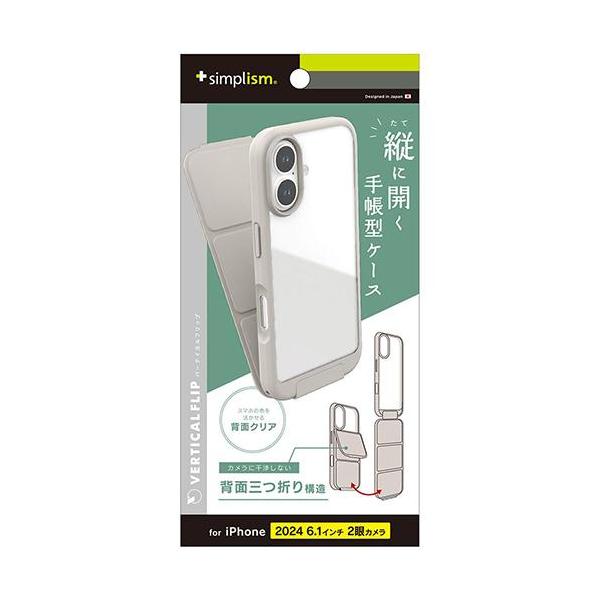 トリニティ TRIP24M2VFGRG iPhone16用 Vertical Flip 縦開き背面クリアフリップケース グレージュ