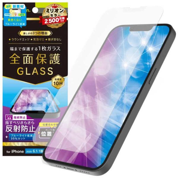 トリニティ iPhone 16e/ 14/ 13/ 13Pro フィルム フルカバー 反射防止 黄色くないブルーライト低減 画面保護強化ガラス 位置ピタ TR-IP25S-GLI-CSB3AG