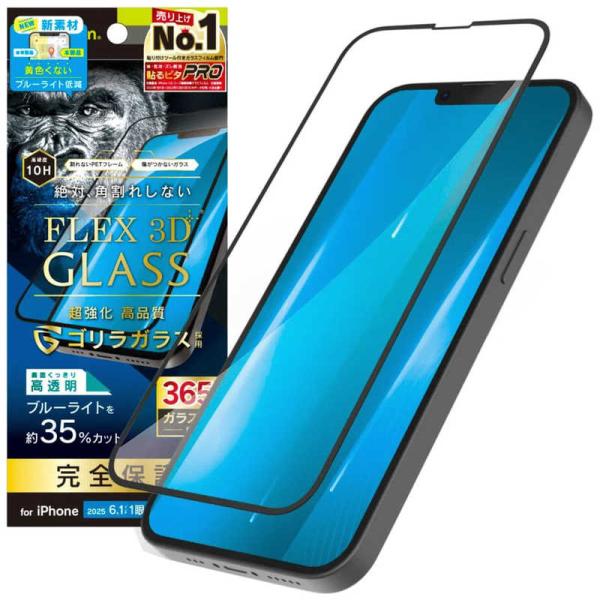 トリニティ iPhone 16e/ 14/ 13/ 13Pro [FLEX 3D] フィルム ゴリラガラス 黄色くないブルーライト低減 複合フレームガラス ブラック TR-IP25S-G3-GOB3CBK