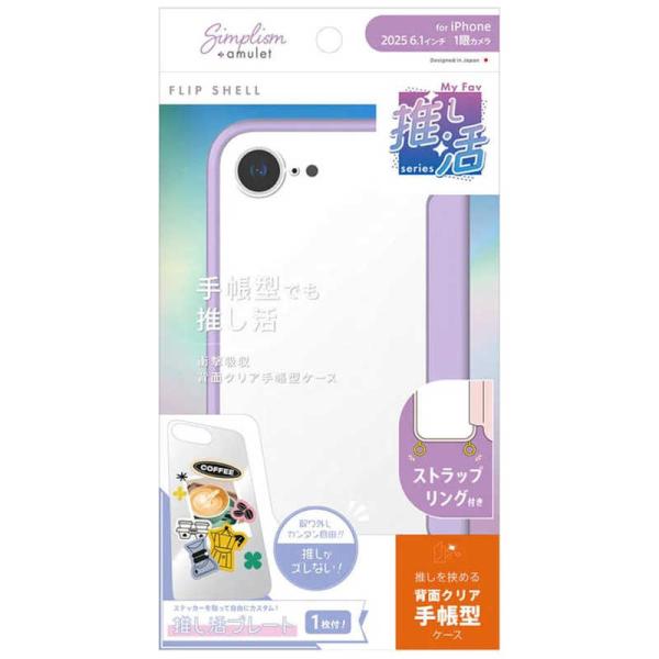 トリニティ iPhone 16e [Flip Shell MyFav] 背面クリア推し活フリップシェルケース パープル AM-IP25S-FSMF-PP