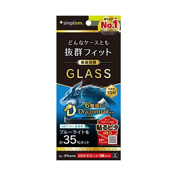 トリニティ iPhone17 / iPhone 16 Pro用 ケースとの相性抜群 Dragontrail 黄色くないブルーライト低減 画面保護強化ガラス 光沢