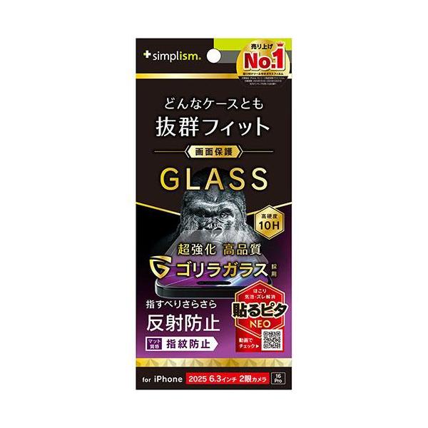 トリニティ iPhone17 / iPhone 16 Pro用 ケースとの相性抜群 ゴリラガラス 反射防止 画面保護強化ガラス TR-IP25M2-GLS-GOAG