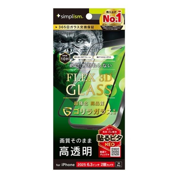 トリニティ iPhone 17 / 16 Pro対応 [FLEX 3D] 複合フレームガラス ゴリラガラス TR-IP25M2-G3-GOCCBK