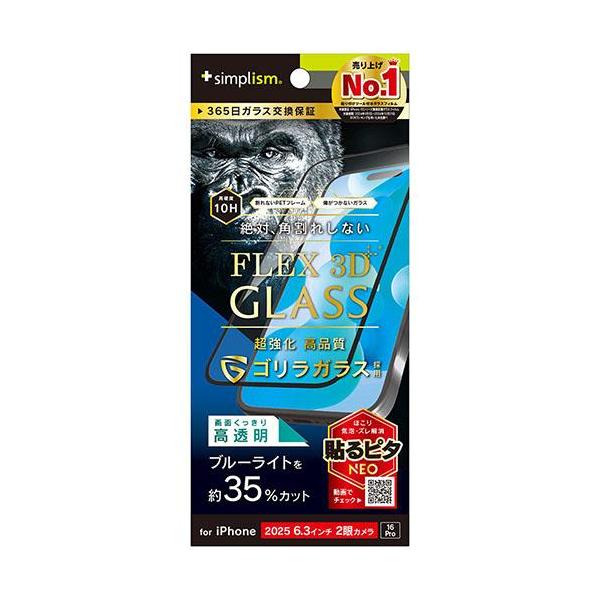 トリニティ iPhone17 / iPhone 16 Pro用 FLEX 3D ゴリラガラス 黄色くないブルーライト低減 複合フレームガラス ブラック